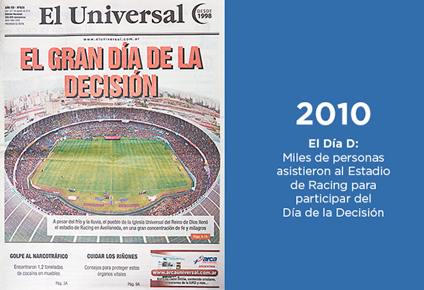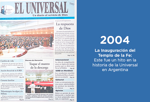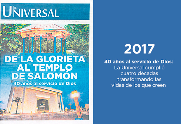 Todas las semanas, El Universal le lleva la palabra de Dios a los que están perdidos, a los desesperados, a quienes creen que ya no existe esperanza. Es por eso que desde su creación, hace ya 1000 ediciones, acompaña a la Universal en su misión de evangelizar a toda Argentina.