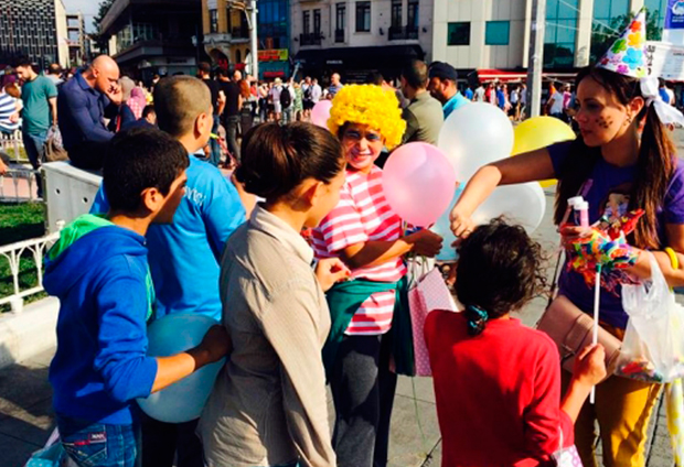 “Este evento fue realizado en las calles y fueron alcanzados 17 niños sirios”, cuenta el pastor Roberto. “Son niños que, en Estambul, pasan el día en las calles pidiendo ayuda, alimentos o vendiendo pañuelos de papel.”