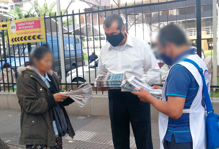 Los voluntarios del grupo Salud se reúnen semanalmente para transmitirles una palabra de fe a los que padecen enfermedades o tienen a un ser querido internado. Esta labor se realiza en la puerta de los hospitales, en las calles y dentro de las iglesias.